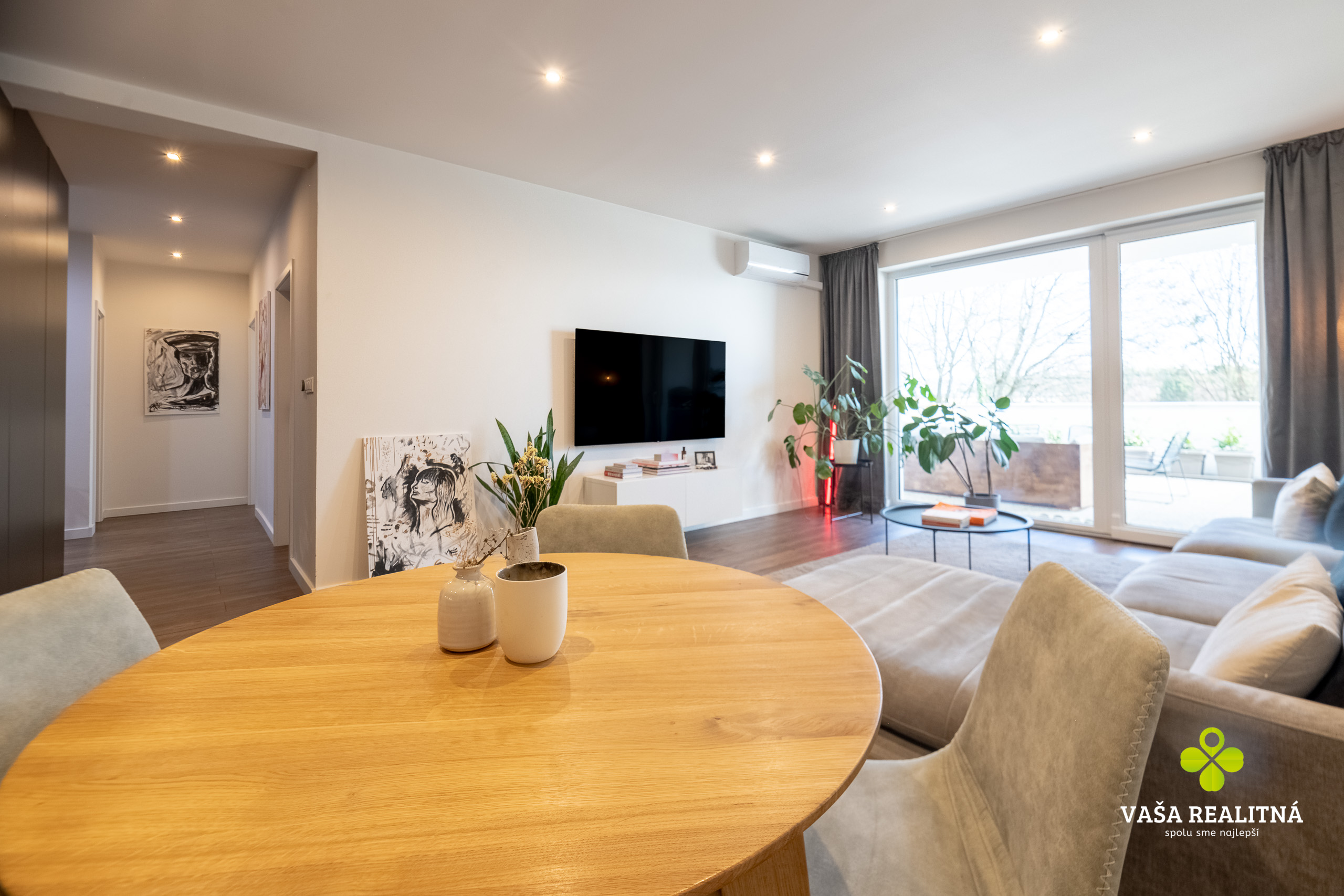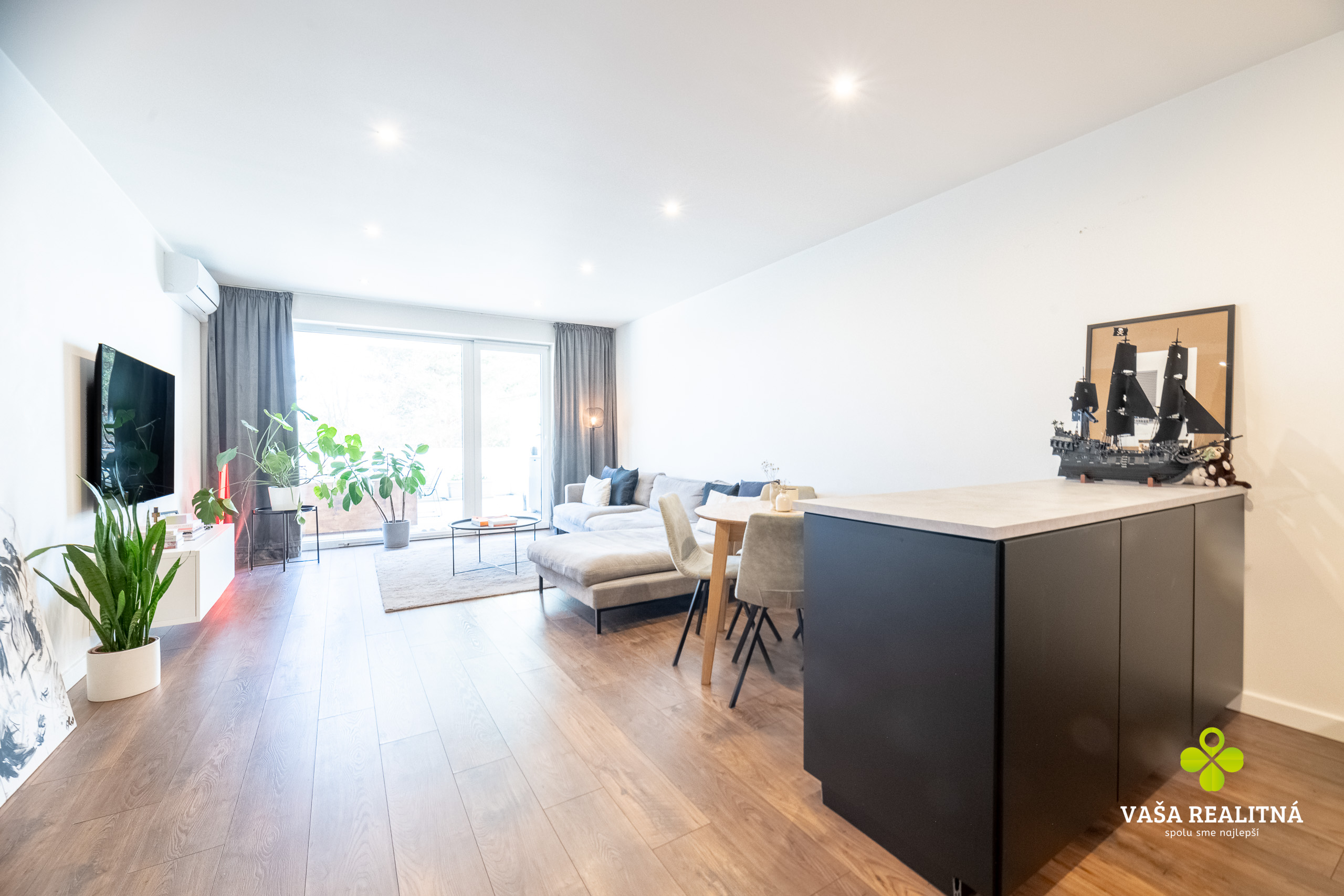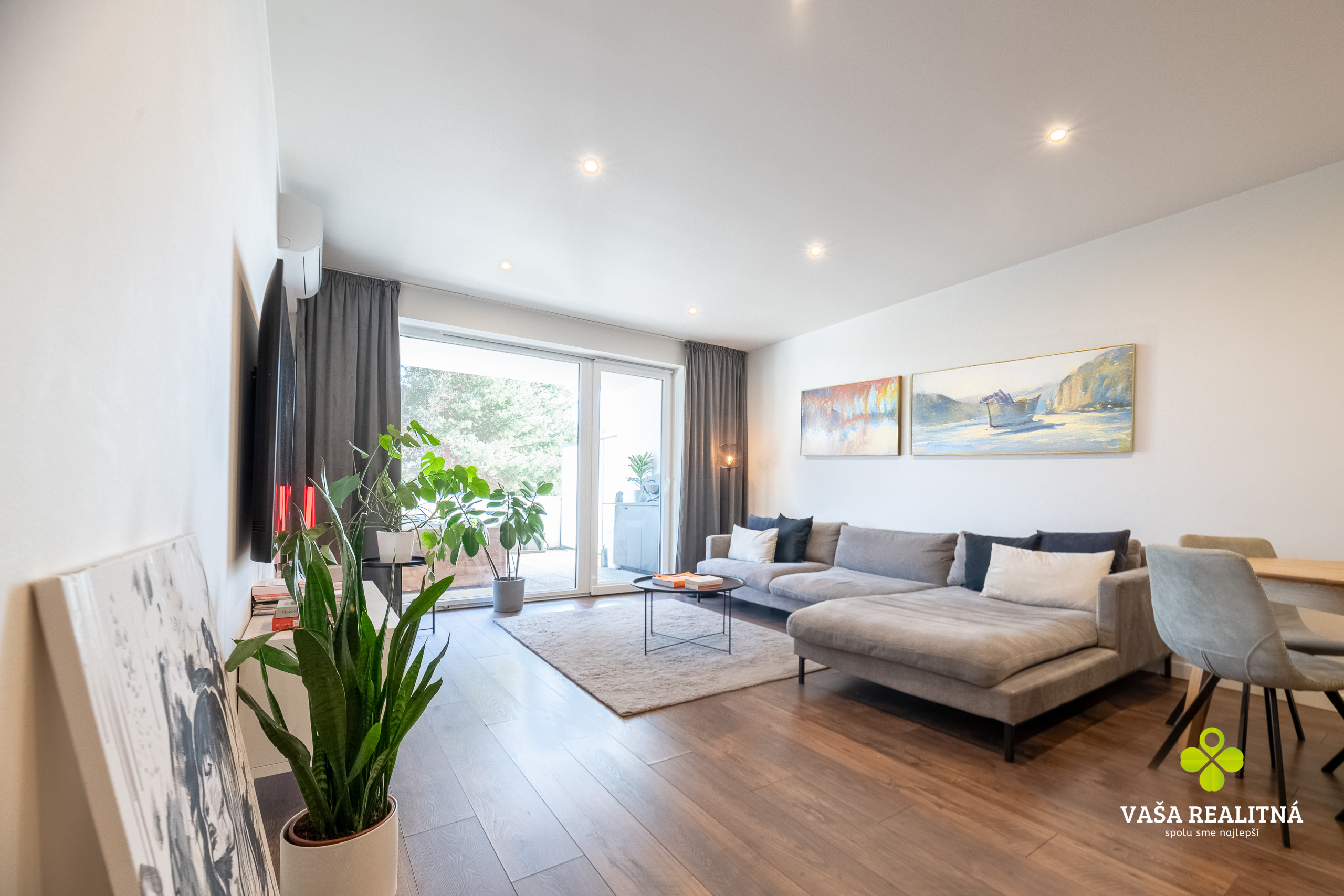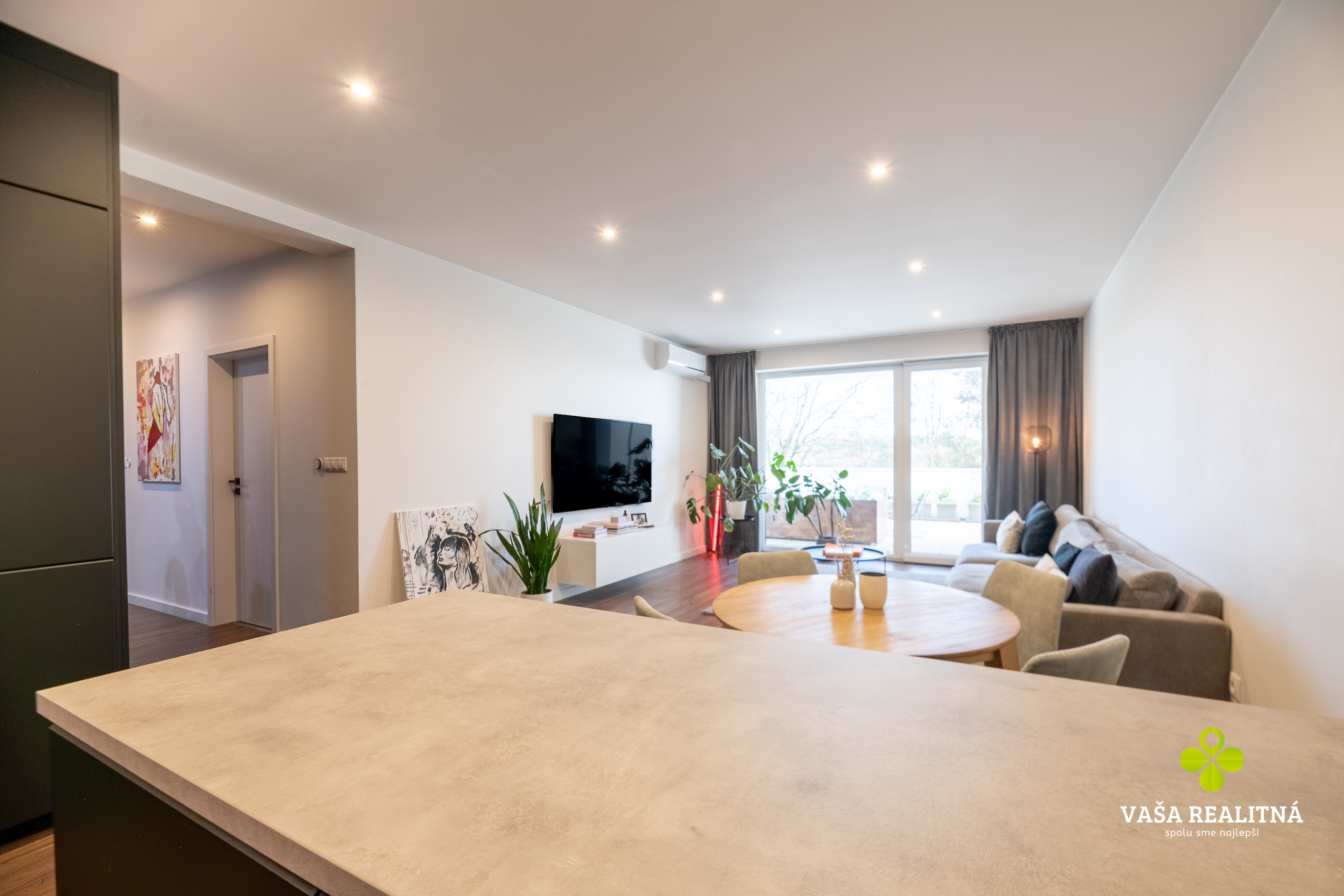Toto je presne ten typ nehnuteľnosti, ktorý sa na trhu neobjavuje každý deň. Nie kvôli tomu, že je „pekný“. Pekných bytov je dosť. Tento je zaujímavý tým, ako je celé bývanie premyslené — veľkorysý priestor, čistý moderný štýl, množstvo svetla a terasa, ktorá tu nehrá druhé husle, ale robí polovicu atmosféry celého bytu.