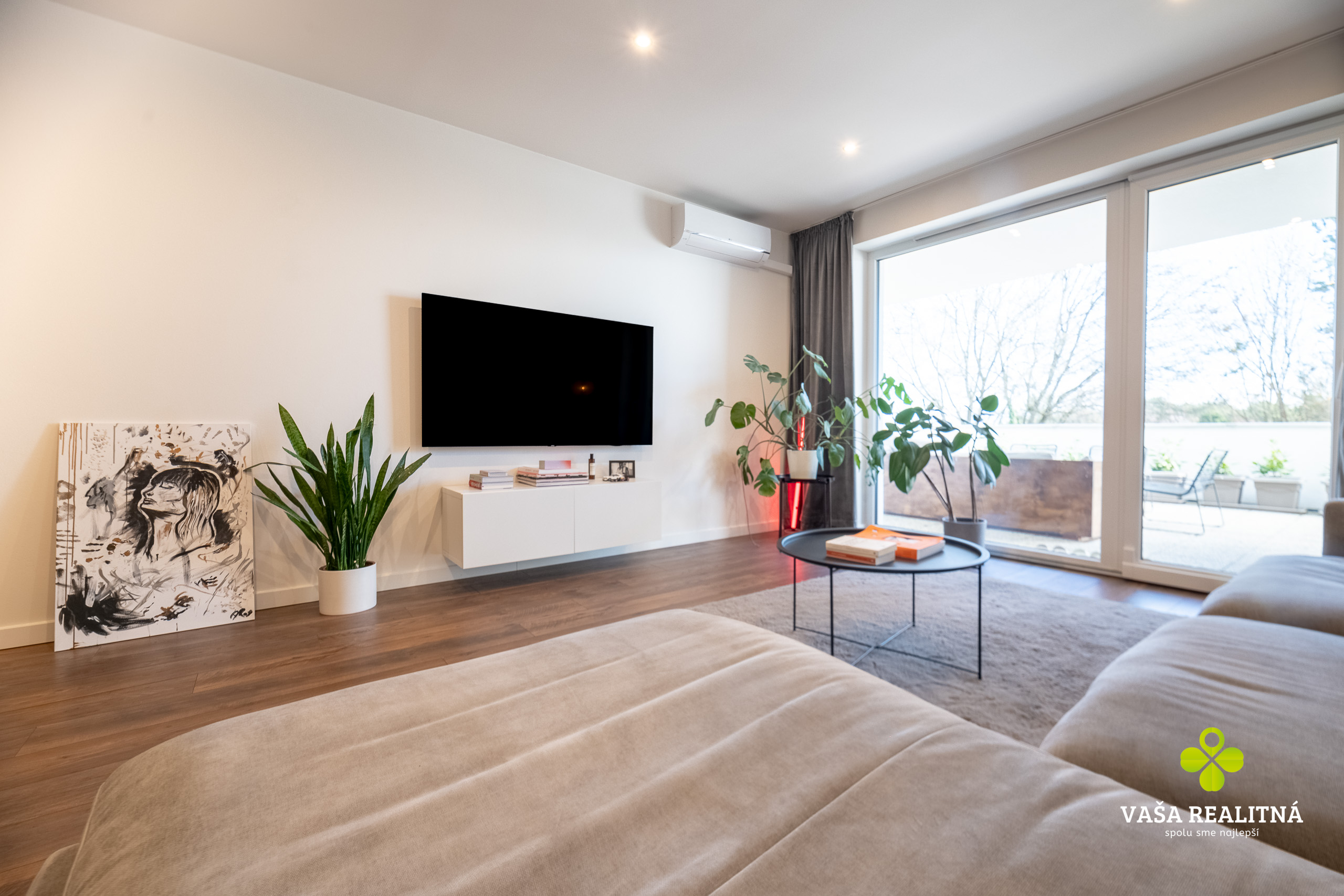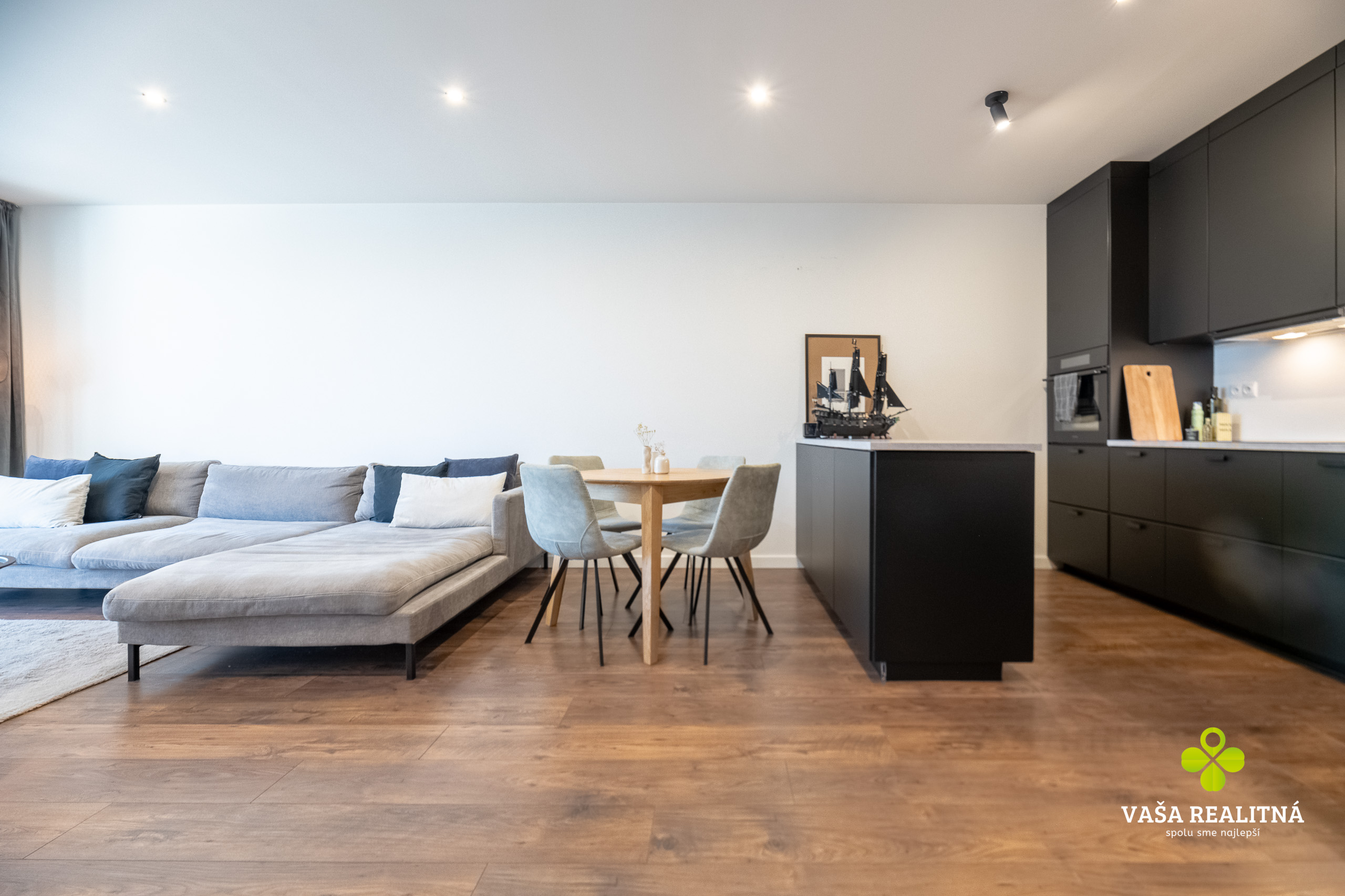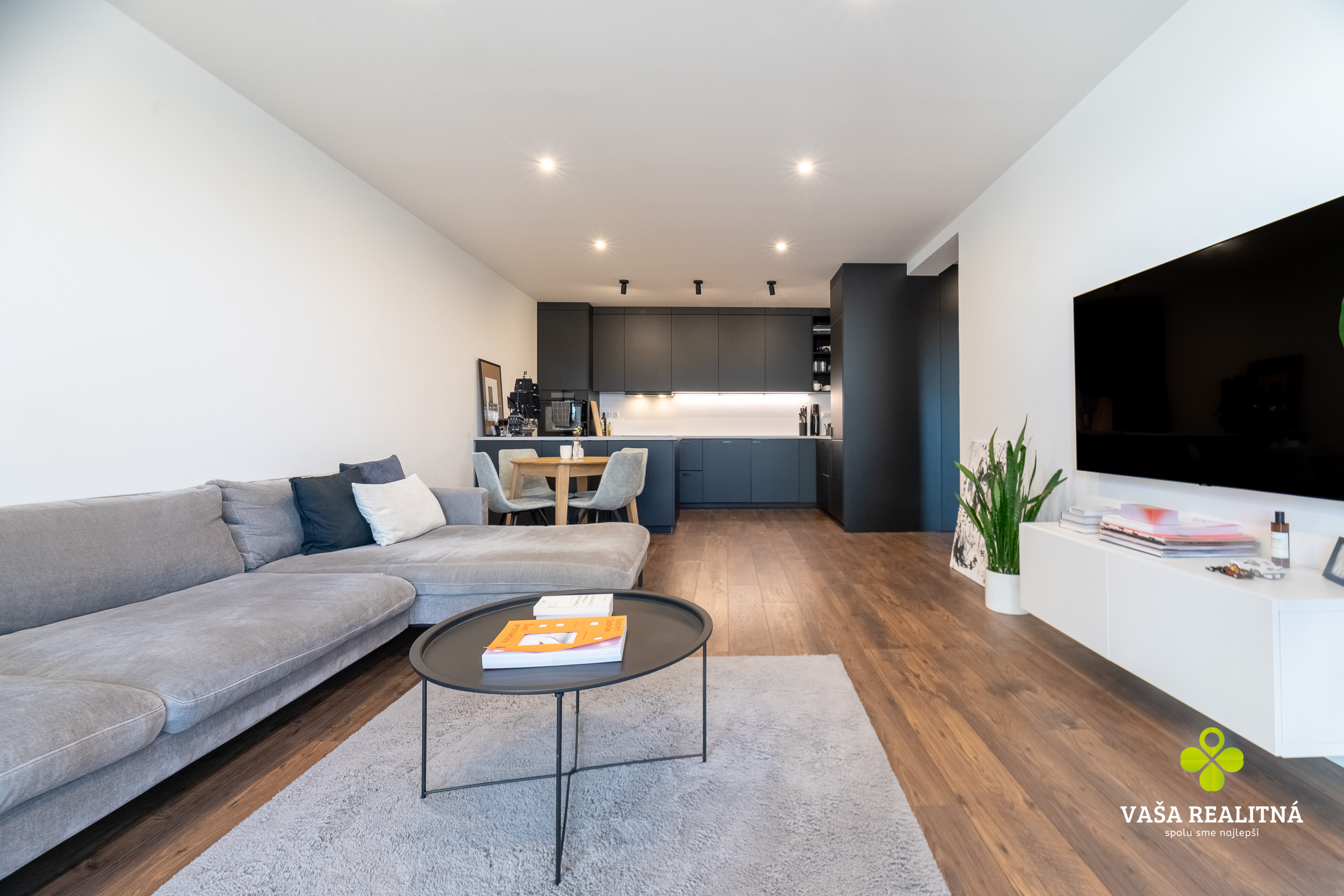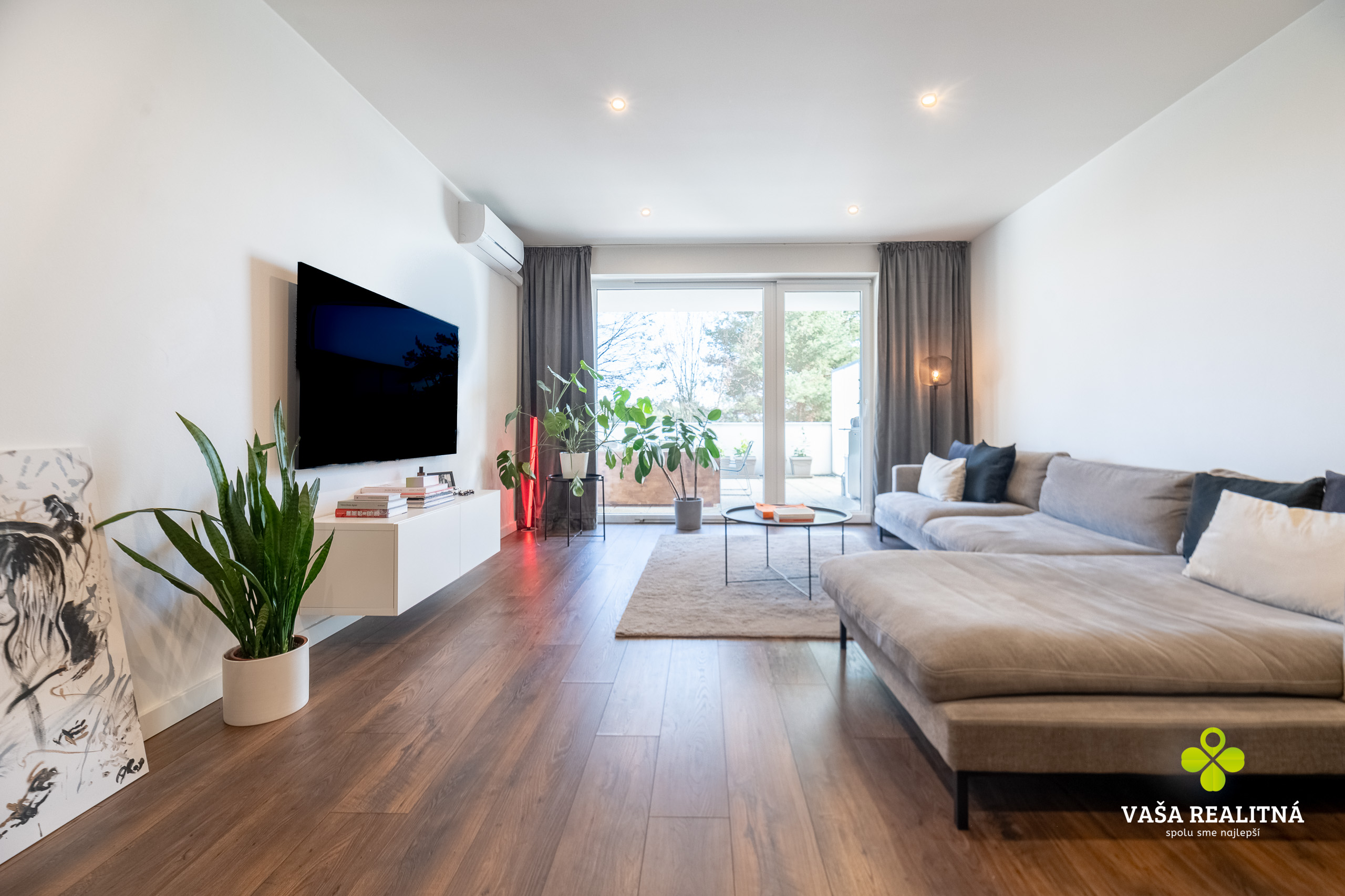 Toto je presne ten typ nehnuteľnosti, ktorý sa na trhu neobjavuje každý deň. Nie kvôli tomu, že je „pekný“. Pekných bytov je dosť. Tento je zaujímavý tým, ako je celé bývanie premyslené — veľkorysý priestor, čistý moderný štýl, množstvo svetla a terasa, ktorá tu nehrá druhé husle, ale robí polovicu atmosféry celého bytu.