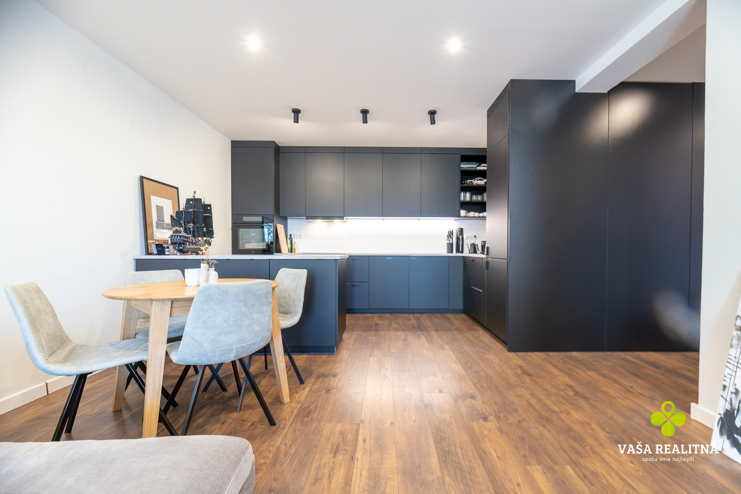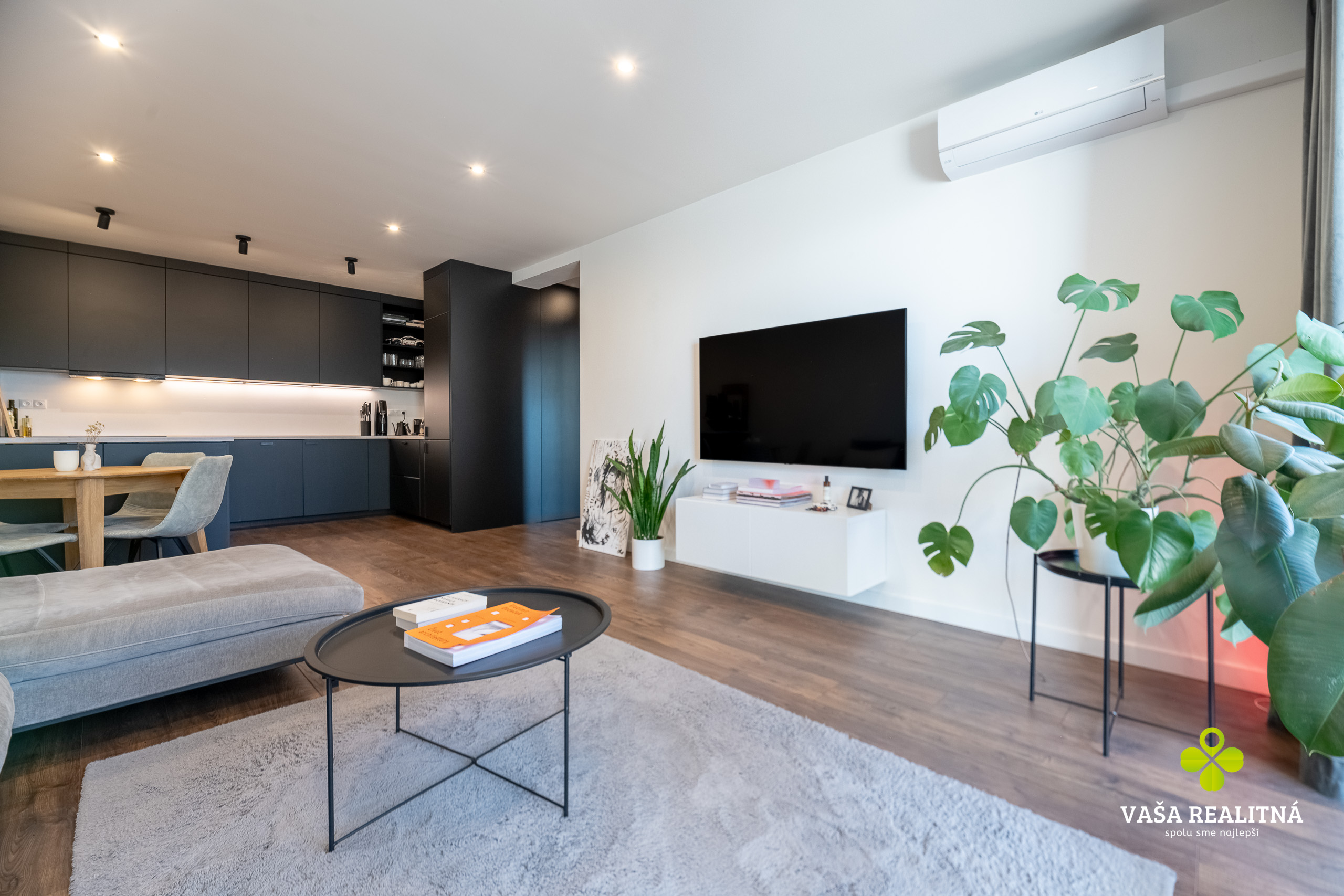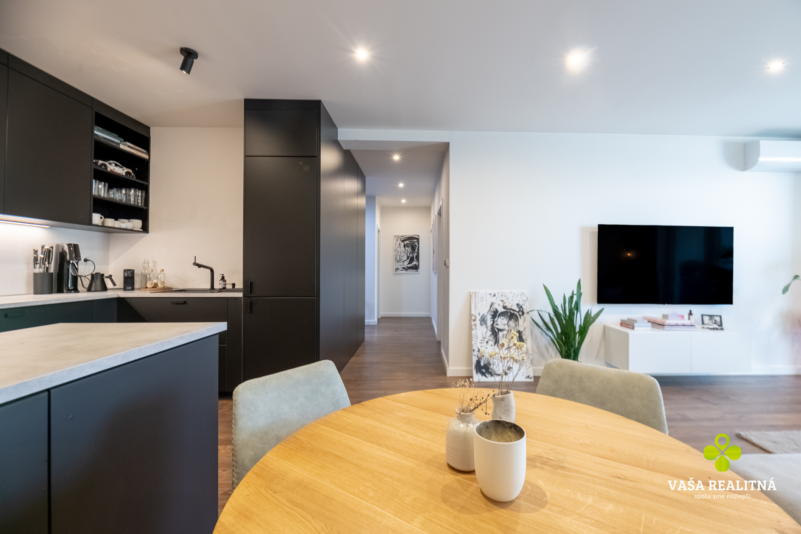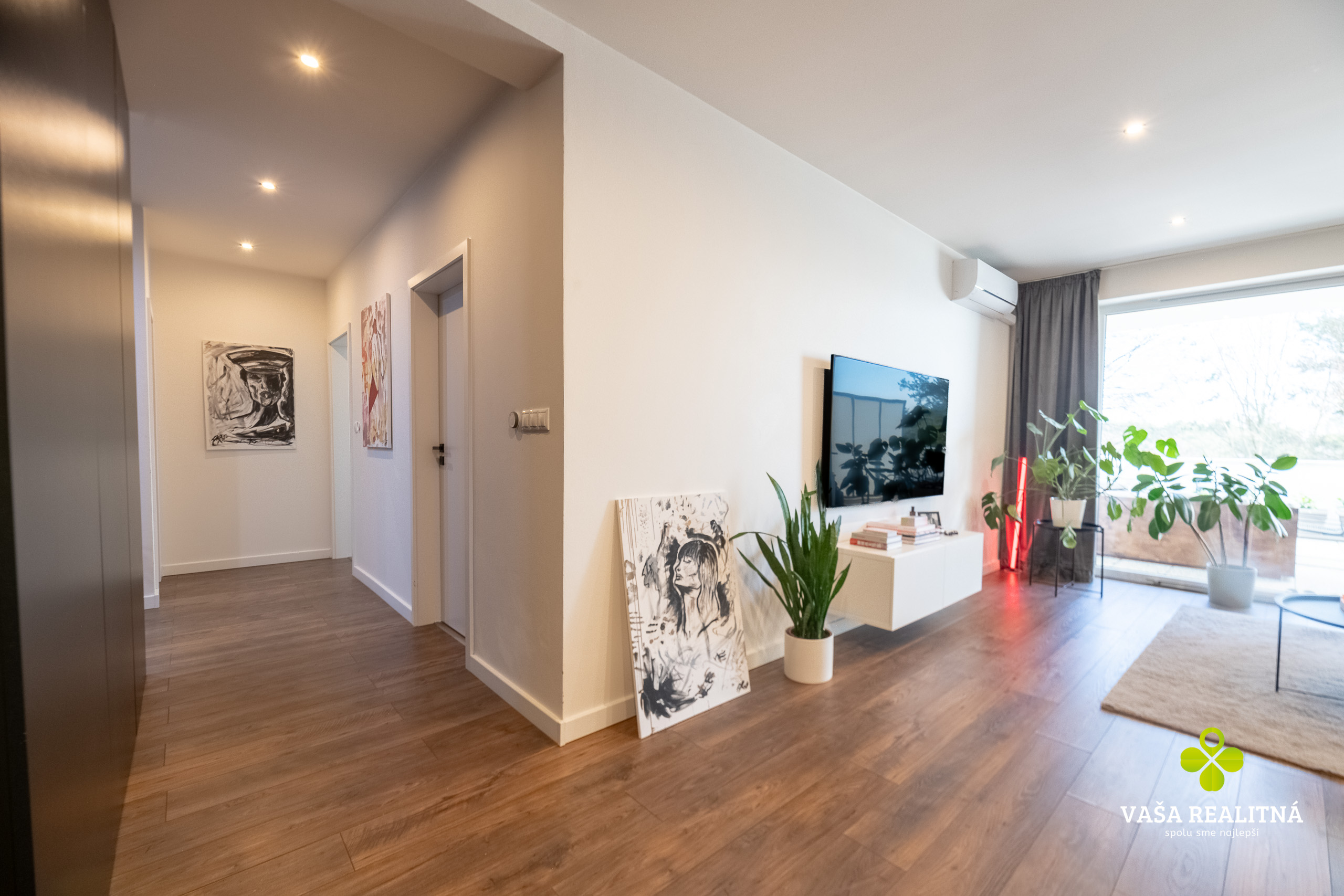 Toto je presne ten typ nehnuteľnosti, ktorý sa na trhu neobjavuje každý deň. Nie kvôli tomu, že je „pekný“. Pekných bytov je dosť. Tento je zaujímavý tým, ako je celé bývanie premyslené — veľkorysý priestor, čistý moderný štýl, množstvo svetla a terasa, ktorá tu nehrá druhé husle, ale robí polovicu atmosféry celého bytu.