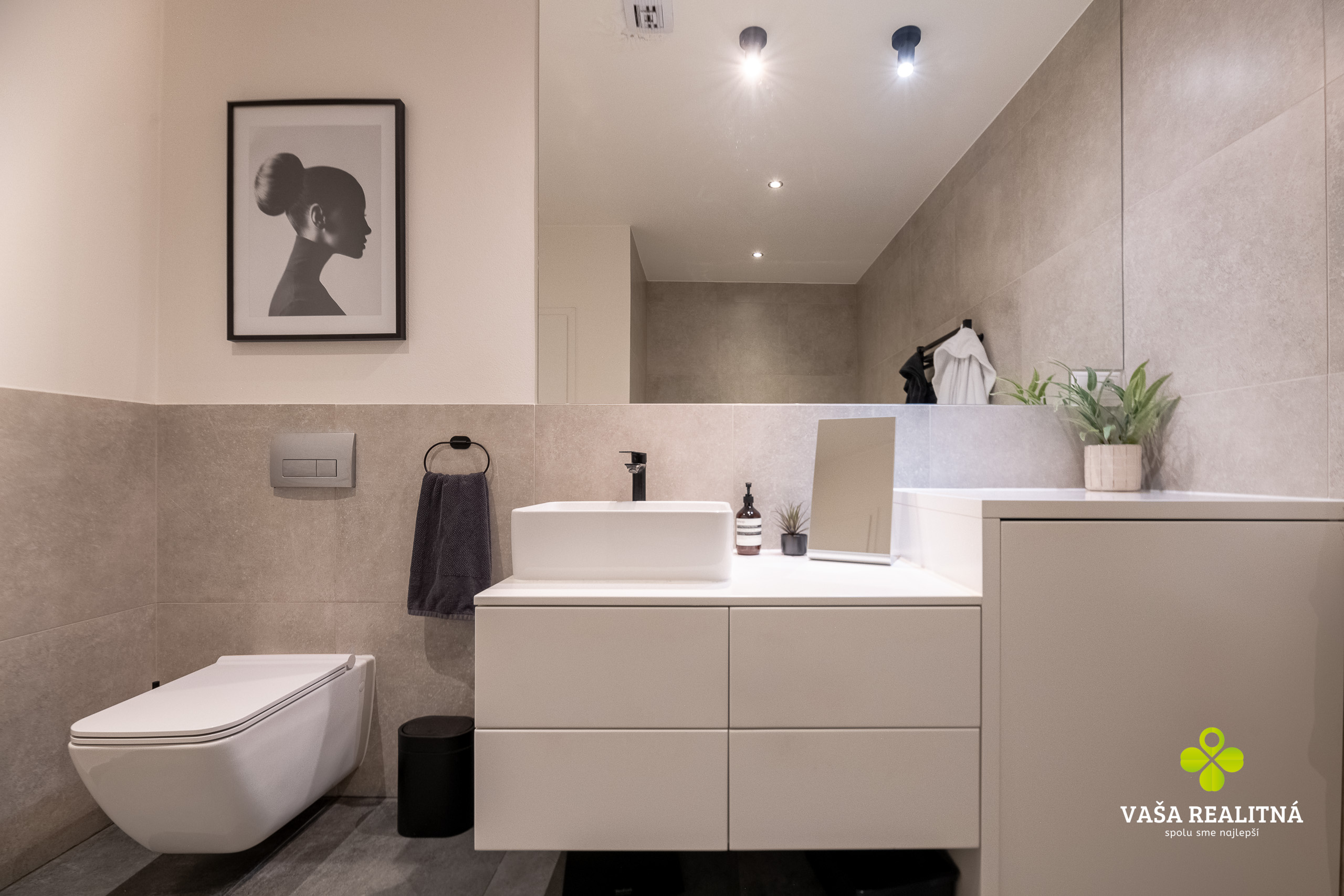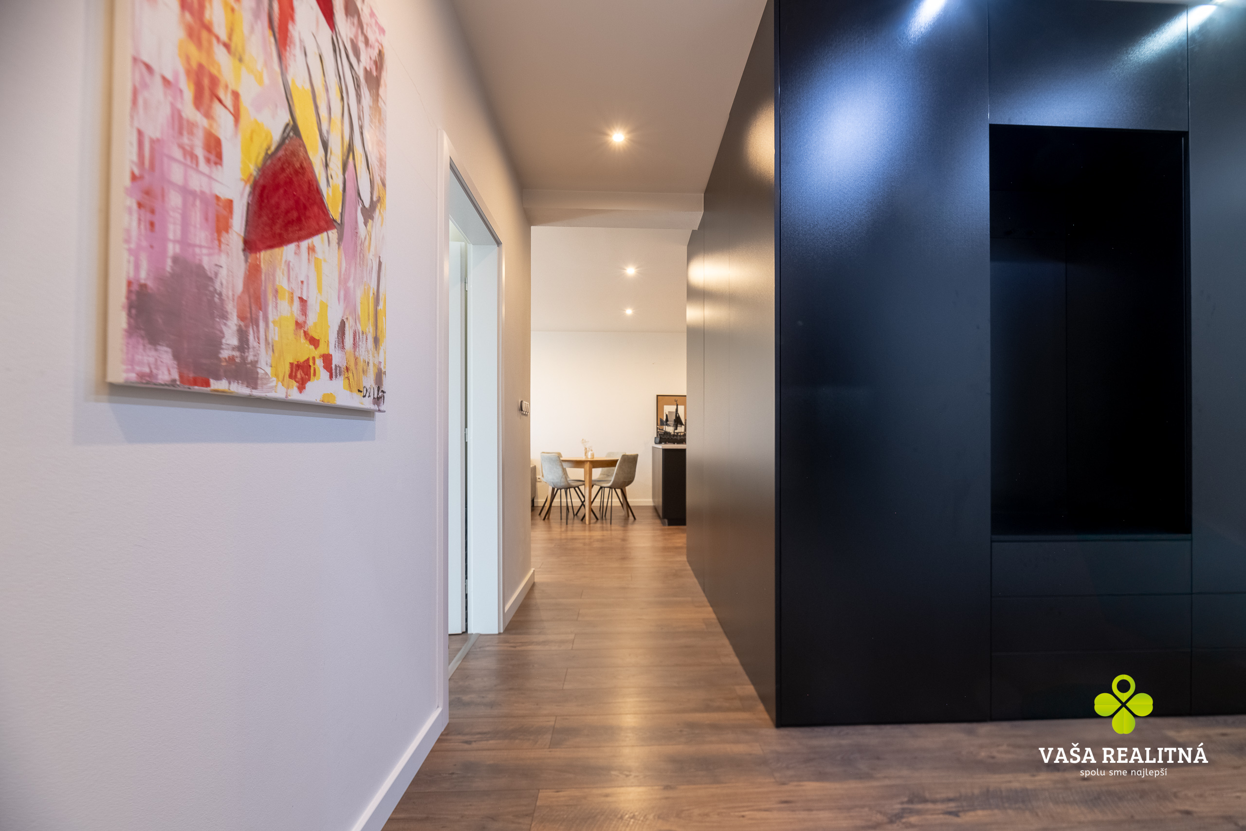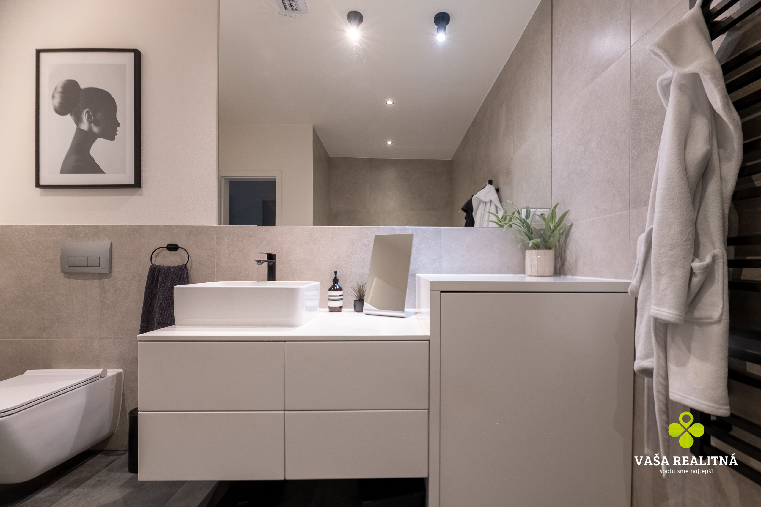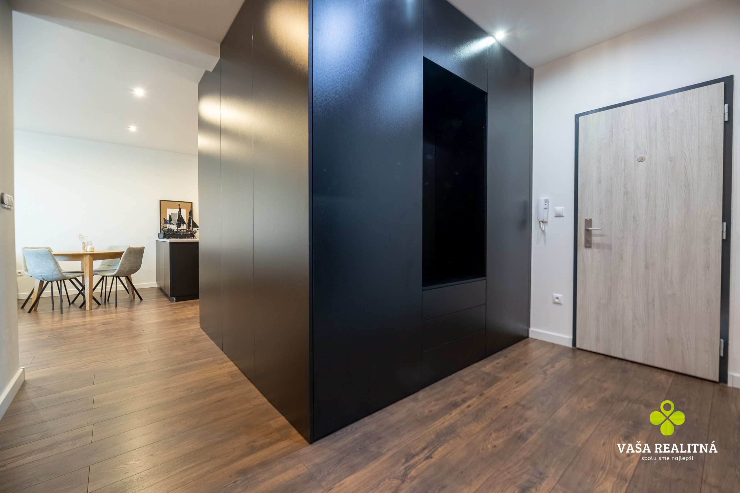 Dispozične ide o 3-izbový byt, ktorý pôsobí veľmi príjemne, otvorene a zároveň prakticky. Každá miestnosť má svoje miesto, nič nie je natlačené, nič nepôsobí nasilu. Kuchyňa je moderná, elegantná a dizajnovo pekne zapadá do celého charakteru bytu. Kúpeľňa pokračuje v rovnakom štýle. K bytu prislúcha aj jedno parkovacie miesto.