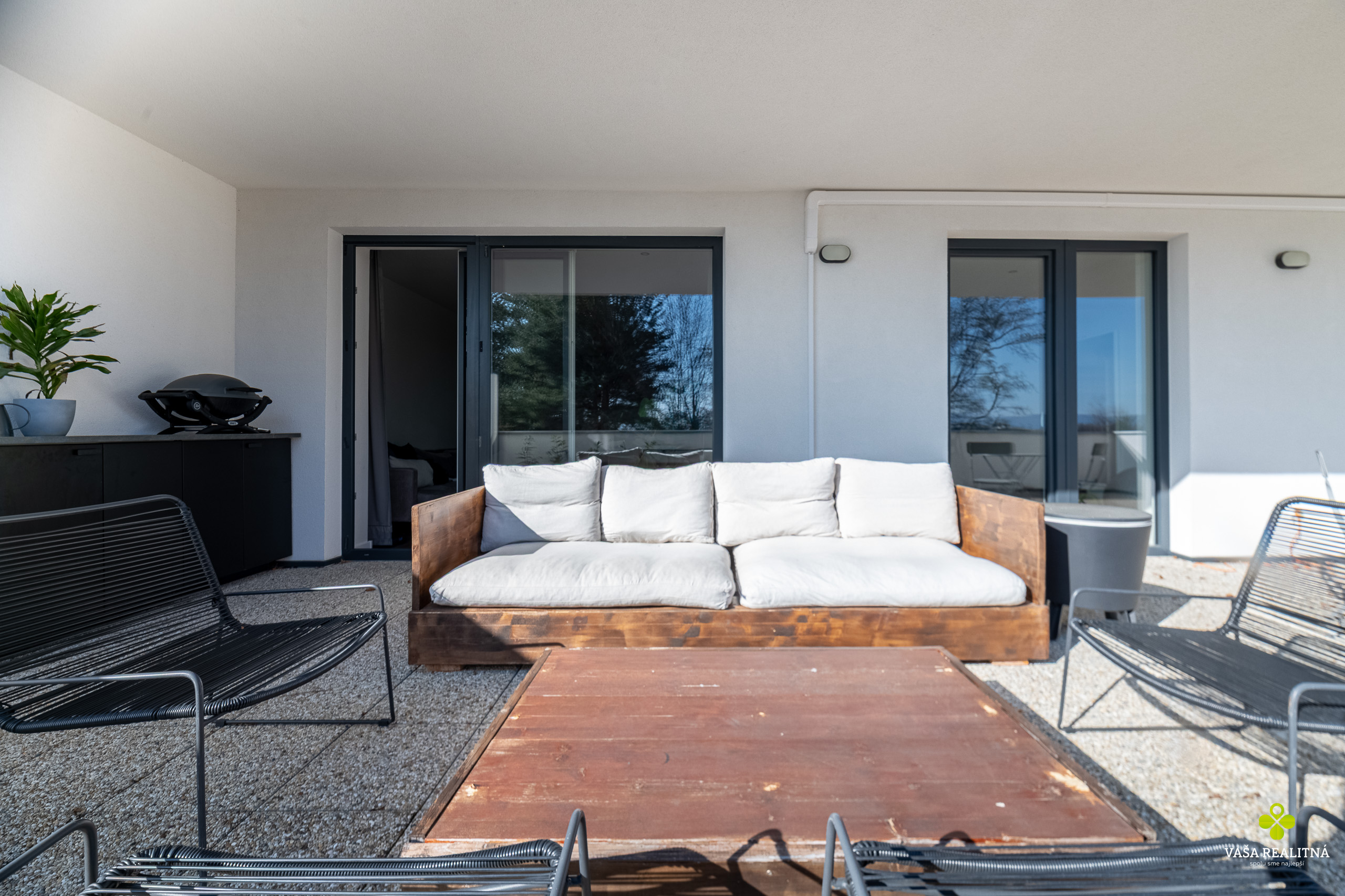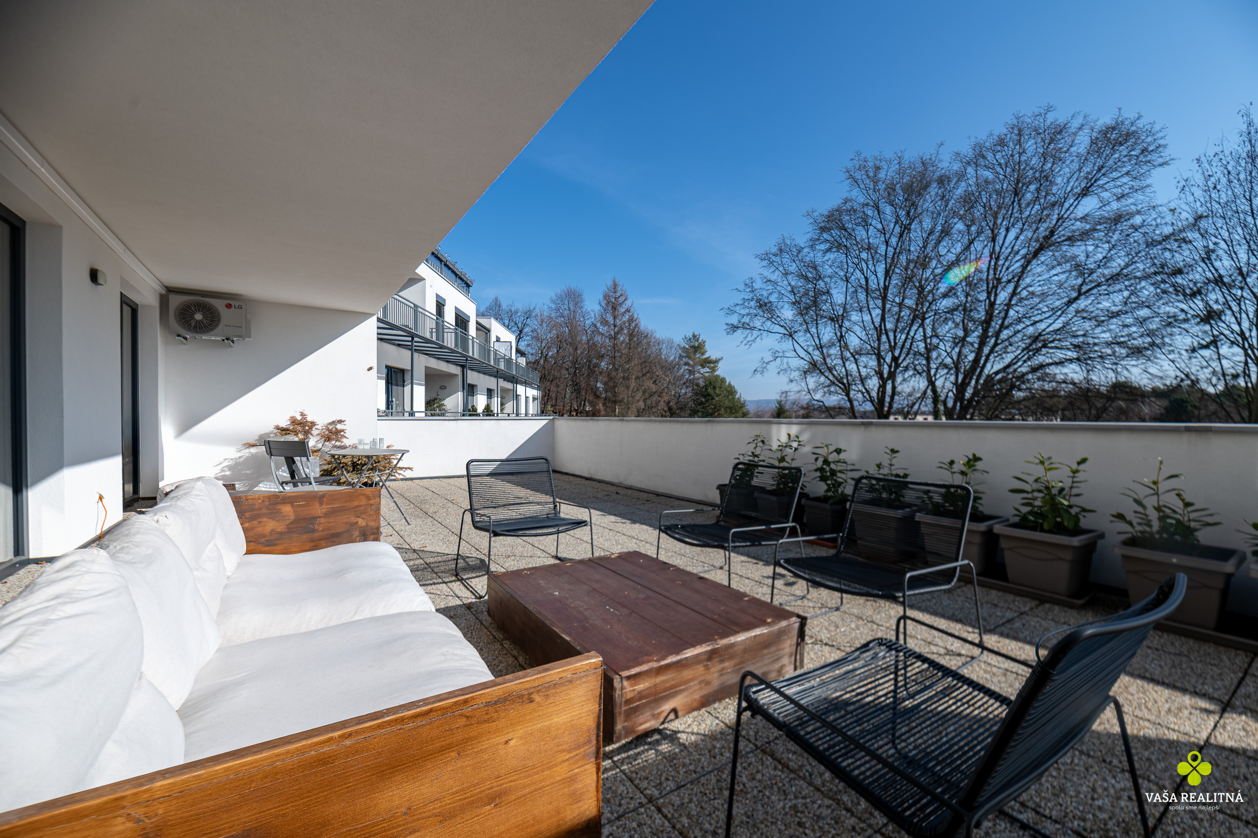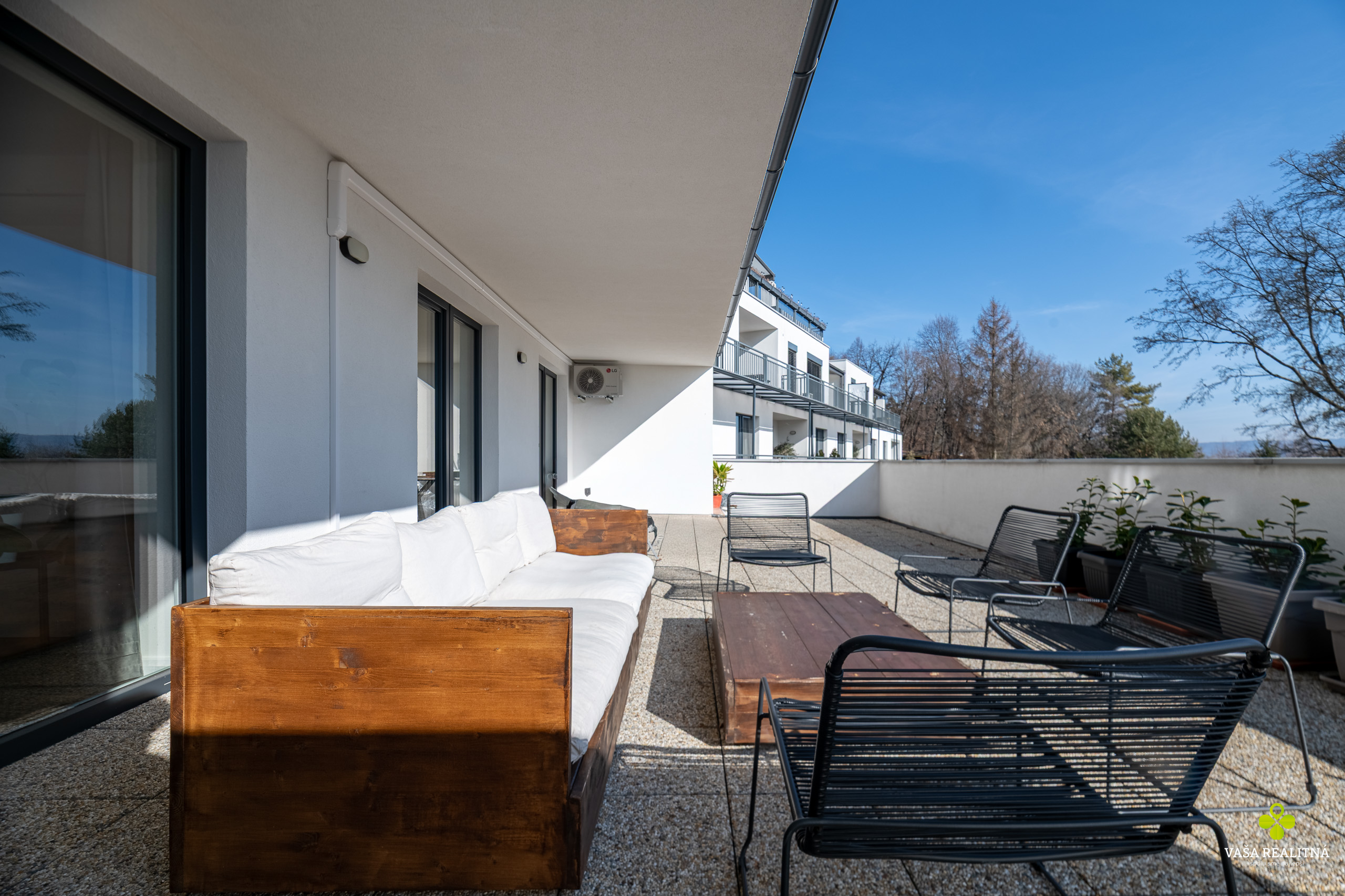 Veľkým benefitom tejto nehnuteľnosti je terasa s výmerou až 56 m², ktorá je v tejto kategórii bytov skôr raritou než bežným štandardom. Ponúka priestor na rannú kávu, večerné posedenie, oddych na slnku aj pokojné chvíle mimo ruchu mesta. A čo je ešte lepšie, výstup na terasu máte z každej izby.