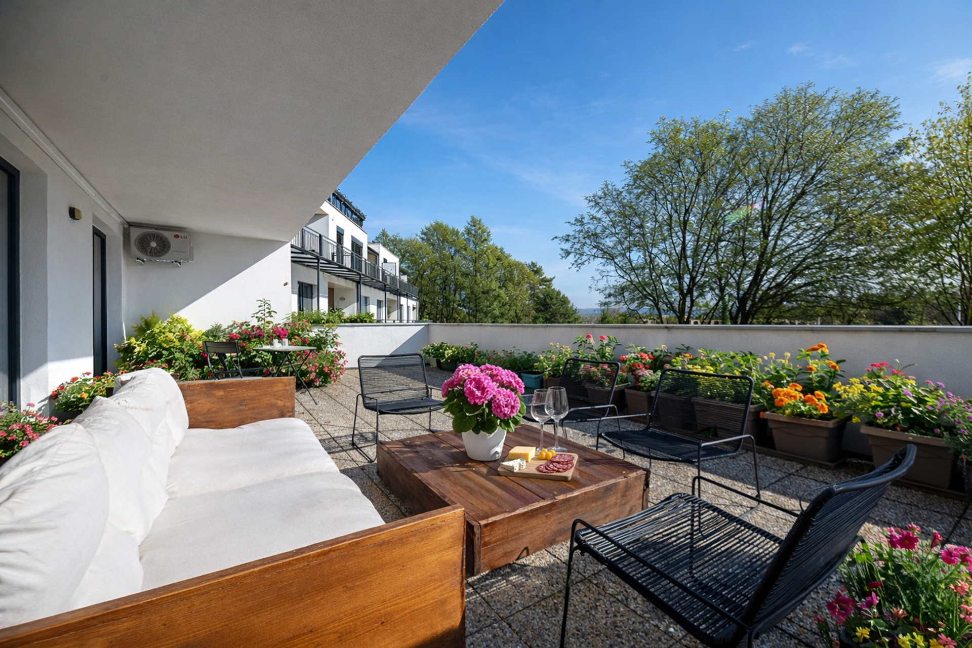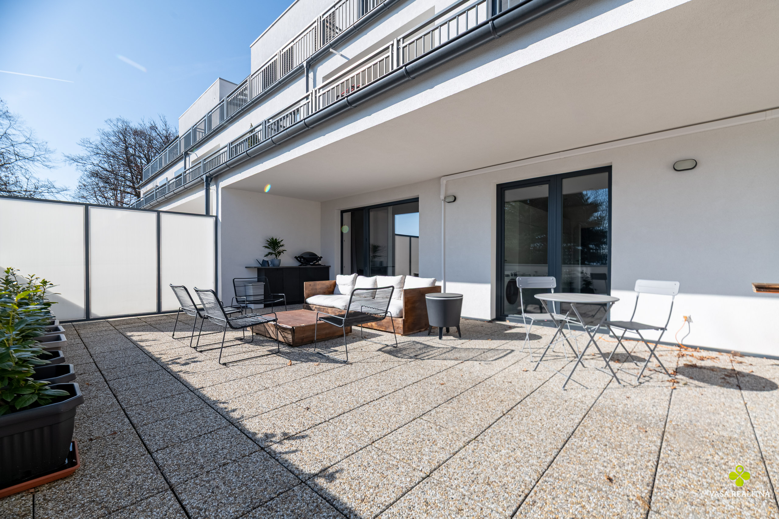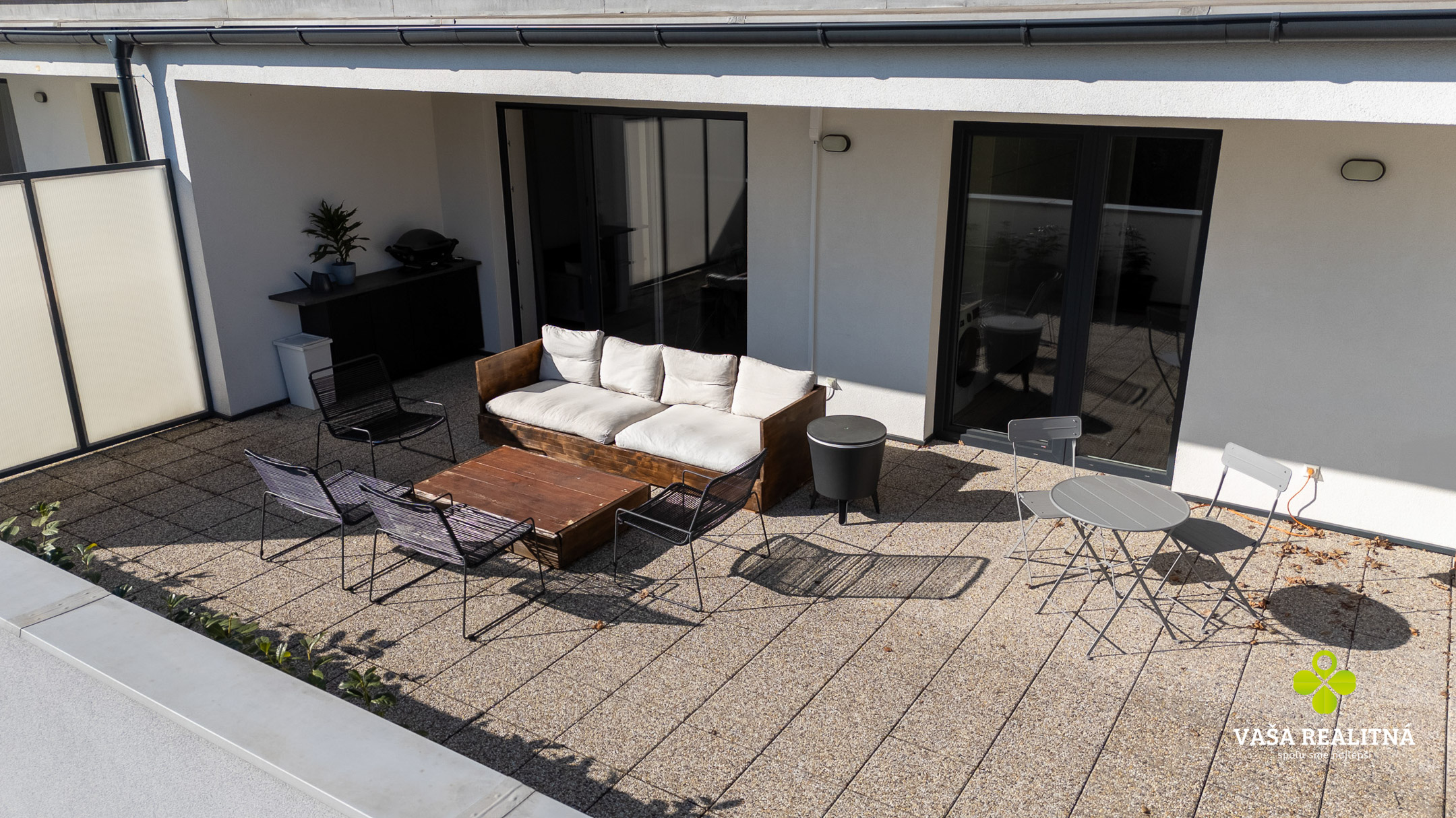 Veľkým benefitom tejto nehnuteľnosti je terasa s výmerou až 56 m², ktorá je v tejto kategórii bytov skôr raritou než bežným štandardom. Ponúka priestor na rannú kávu, večerné posedenie, oddych na slnku aj pokojné chvíle mimo ruchu mesta. A čo je ešte lepšie, výstup na terasu máte z každej izby.