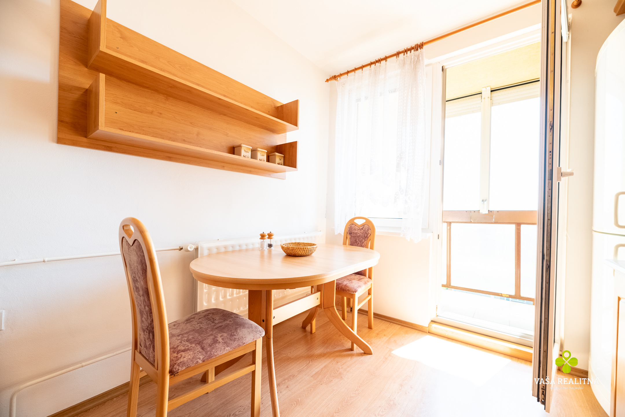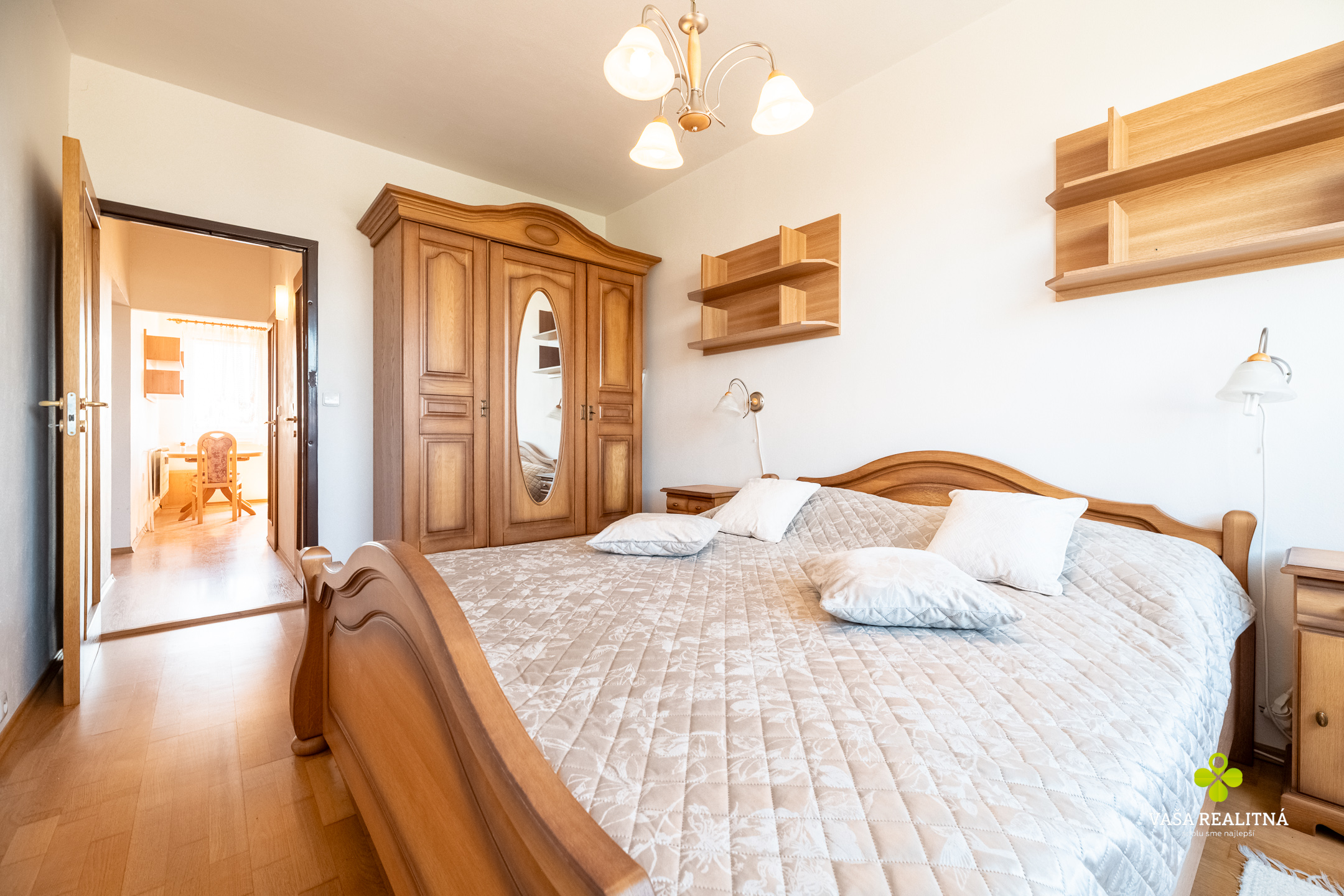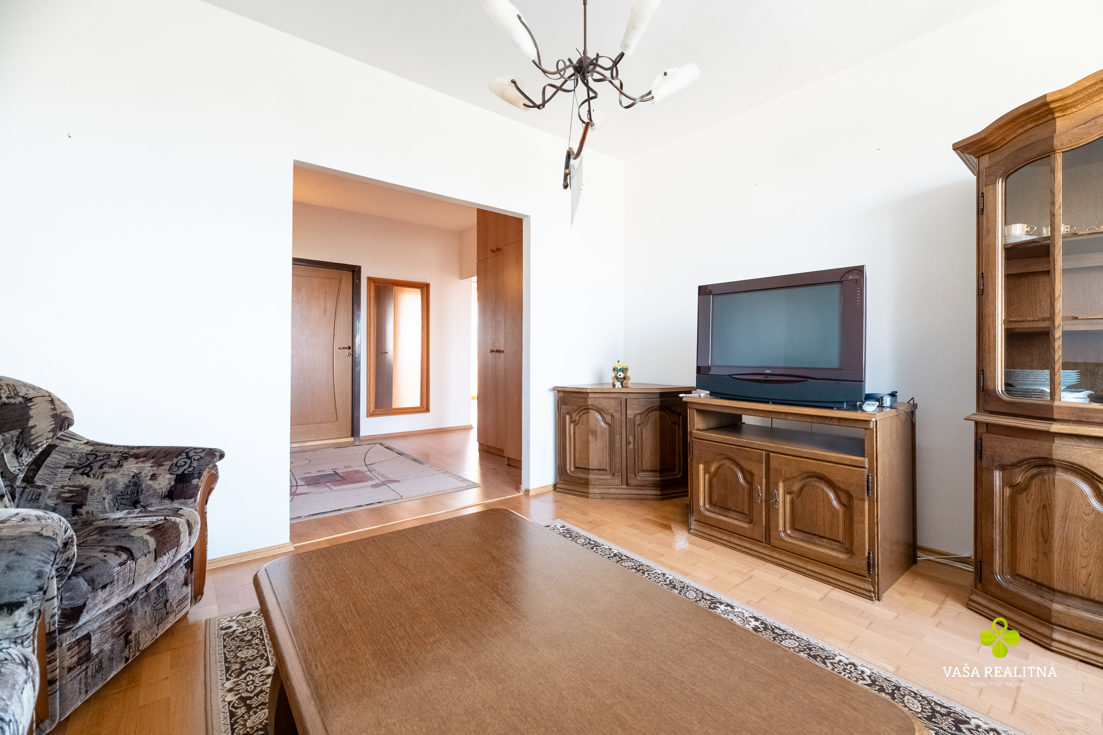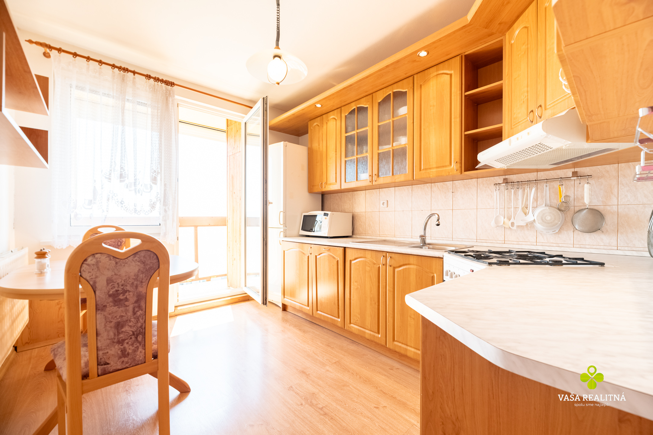 Dispozícia bytu je praktická a veľkorysá. Štyri izby pri výmere 84 m² dávajú novému majiteľovi viac možností. Byt vie dobre fungovať pre rodinu, pár, ktorý potrebuje pracovňu, alebo jednoducho pre niekoho, kto nechce bývať natlačený v malom priestore. Bytový dom je zateplený a má zmodernizovaný výťah. Pri bývaní na 6. poschodí je to vec, ktorú človek ocení každý deň, nie iba pri obhliadke.