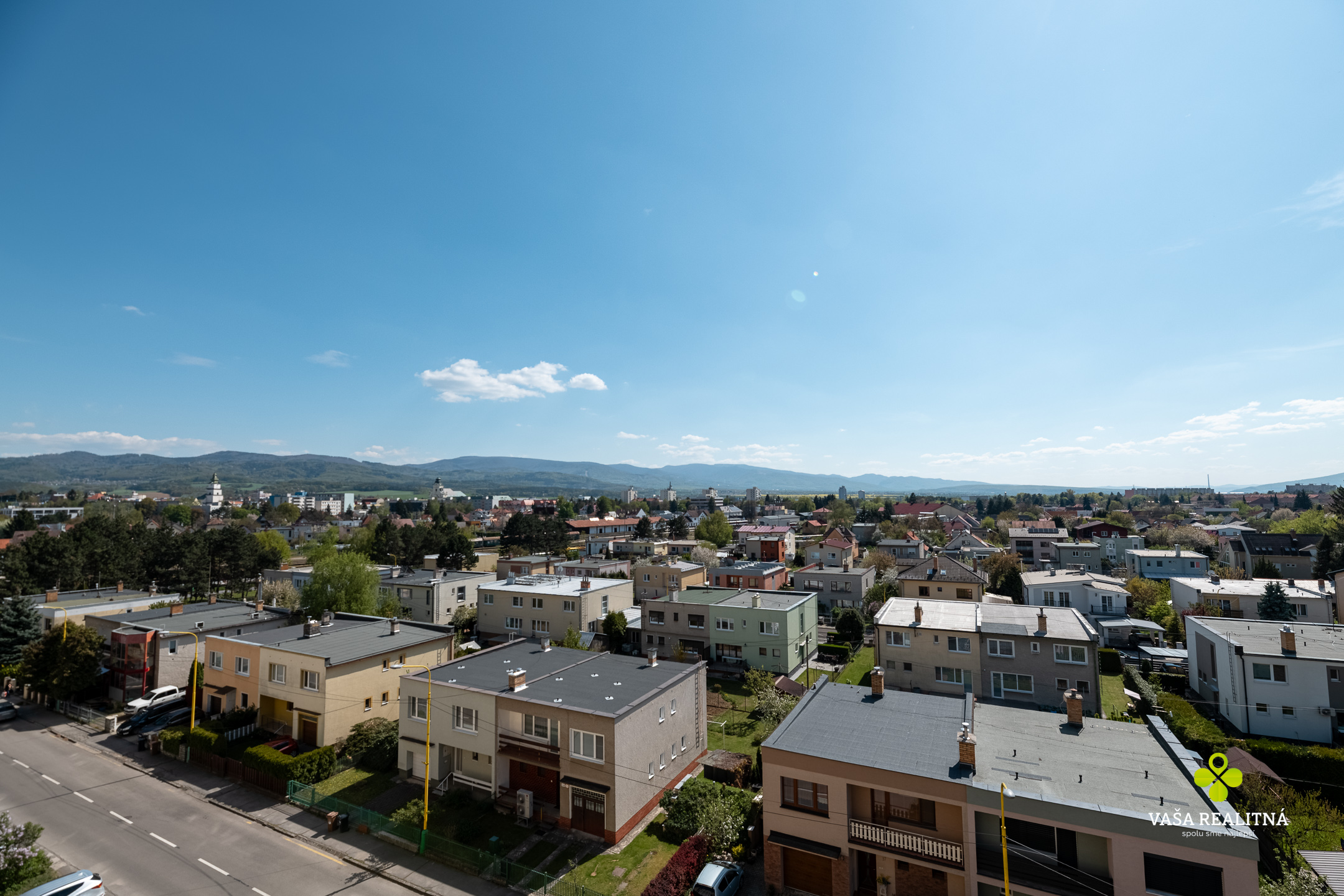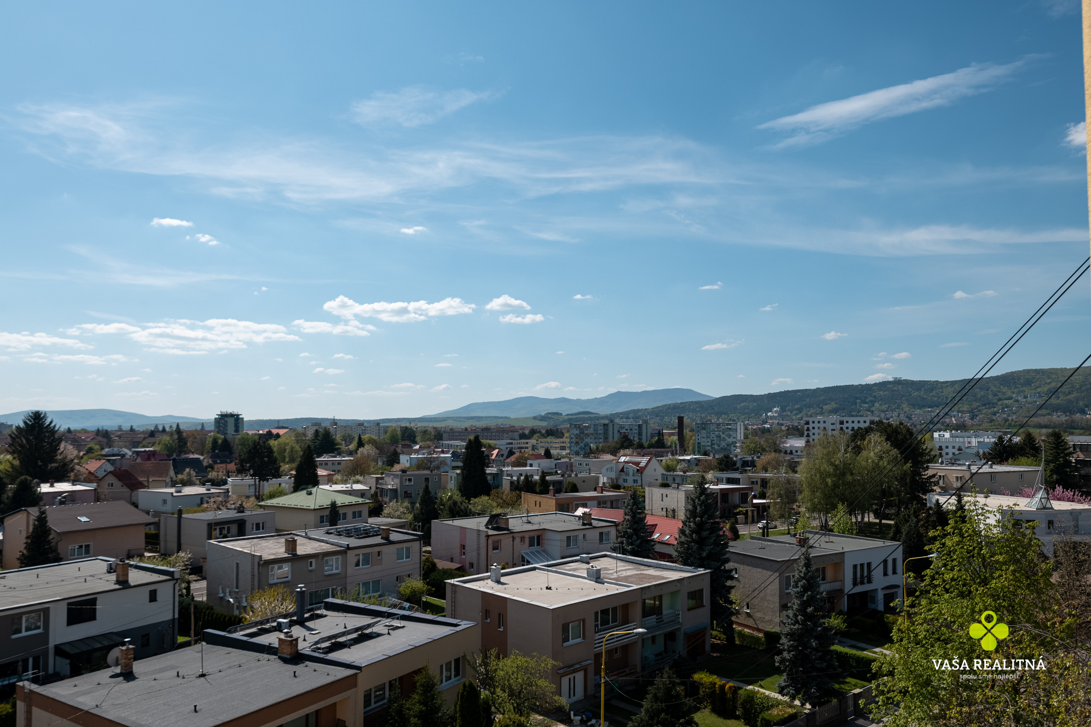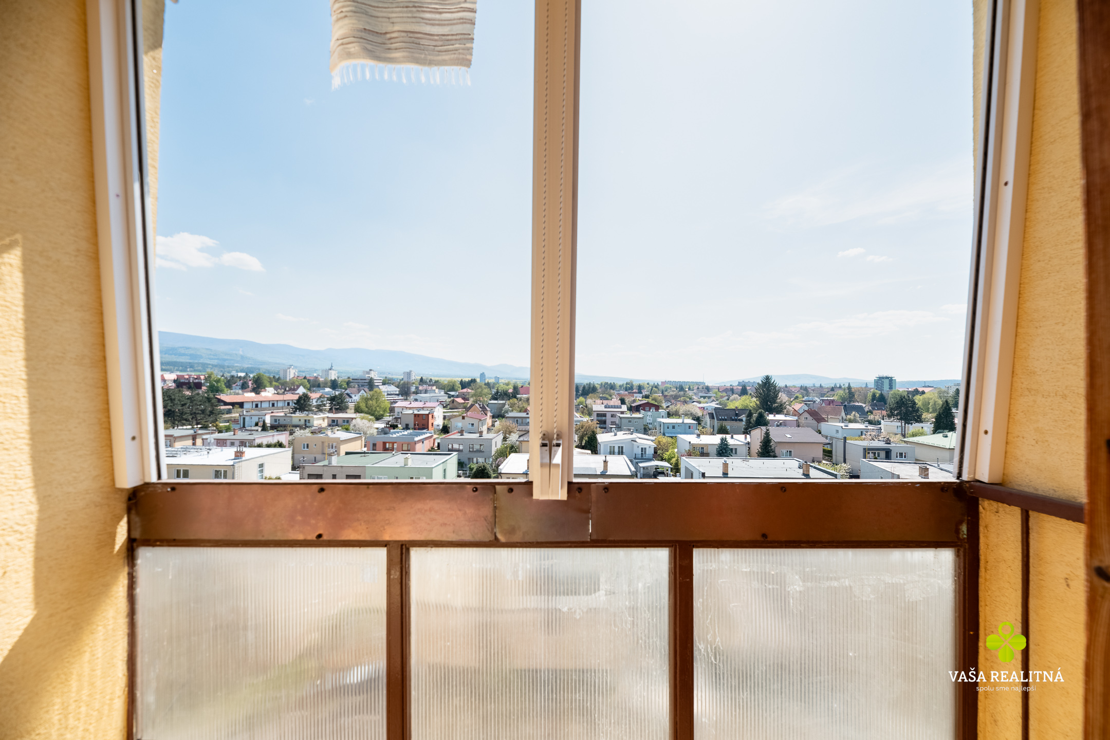 Byt má výmeru 84 m² a nachádza sa na 6. poschodí zo 7. Vďaka tomu ponúka pekný otvorený výhľad na mesto, rodinné domy a okolitú prírodu. A práve poloha je tu jedna z vecí, ktoré dávajú bytu zmysel. Nie ste uprostred hustého sídliska, kde z okna pozeráte rovno do ďalšieho paneláka. Bytový dom stojí na kraji Zapotôčok, pričom ďalej už pokračuje zástavba rodinných domov. Celé to pôsobí vzdušnejšie a pokojnejšie.