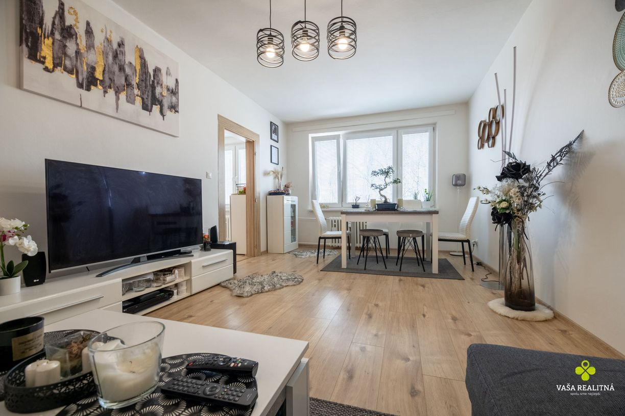 Byt prešiel modernou rekonštrukciou 2023, vrátane nových podláh, elektrických rozvodov, novej sanity, plastových okien, interiérových dverí a zrekonštruovanej kúpeľne a kuchyne.