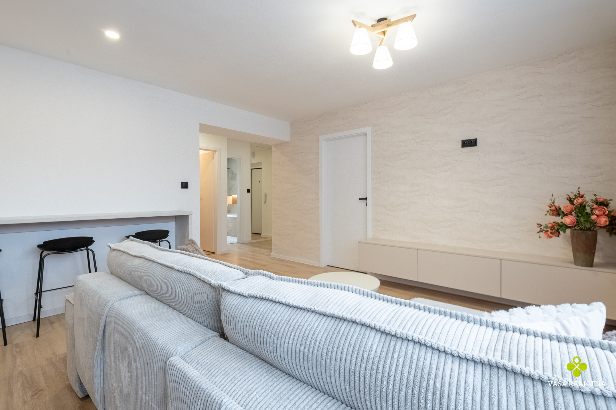 Podlahová plocha bytu je 60 m² a nachádza sa na 2. poschodí z 3 v bytovom dome. Všetky spotrebiče aj zariadenie v byte sú nové a doteraz nepoužívané, pričom byt ešte nebol obývaný. Celý interiér pôsobí svetlo, čisto a nadčasovo, s dôrazom na funkčnosť a praktické využitie priestoru. Súčasťou bytu je aj pivnica nachádzajúca sa v suteréne bytového domu.